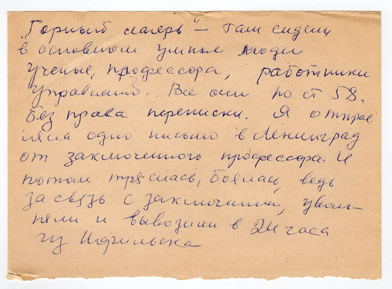 «Горный лагерь» - там сидели в основном умные люди ученые, профессора, работники