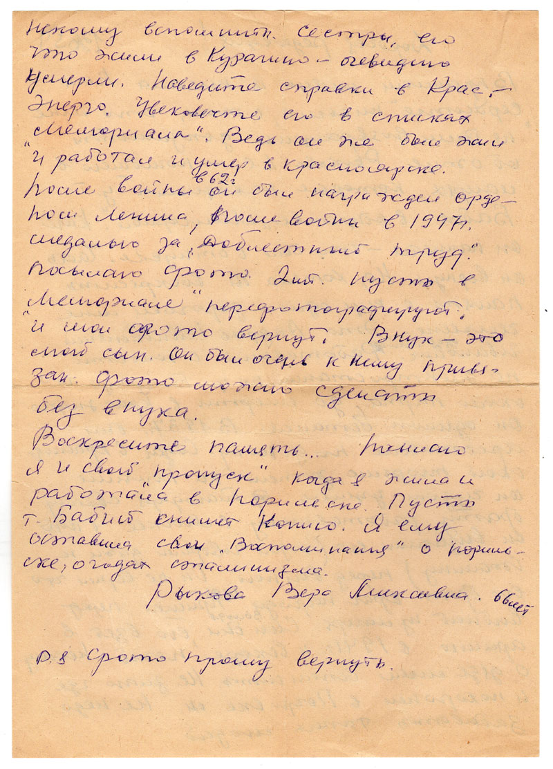 в архив, они очень просили ведут тоже воспоминания о прошлом Минусинска. У меня