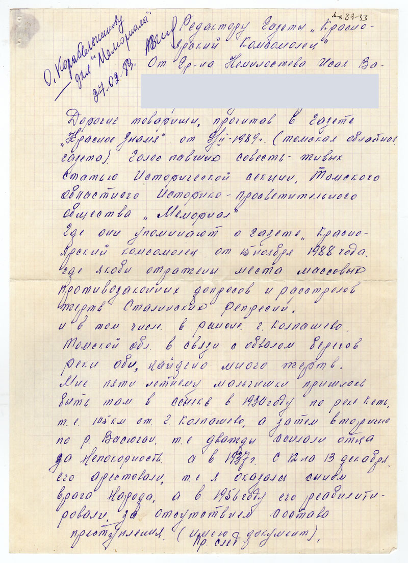 Дорогие товарищи, прочитав в газете «Красное знамя» от 9/II-г. (томская