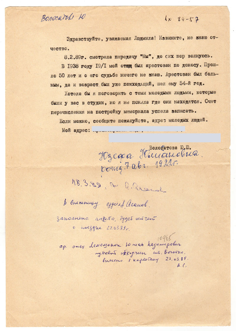 8.2.89 г. смотрела передачу «Мы», до сих пор волнуюсь.