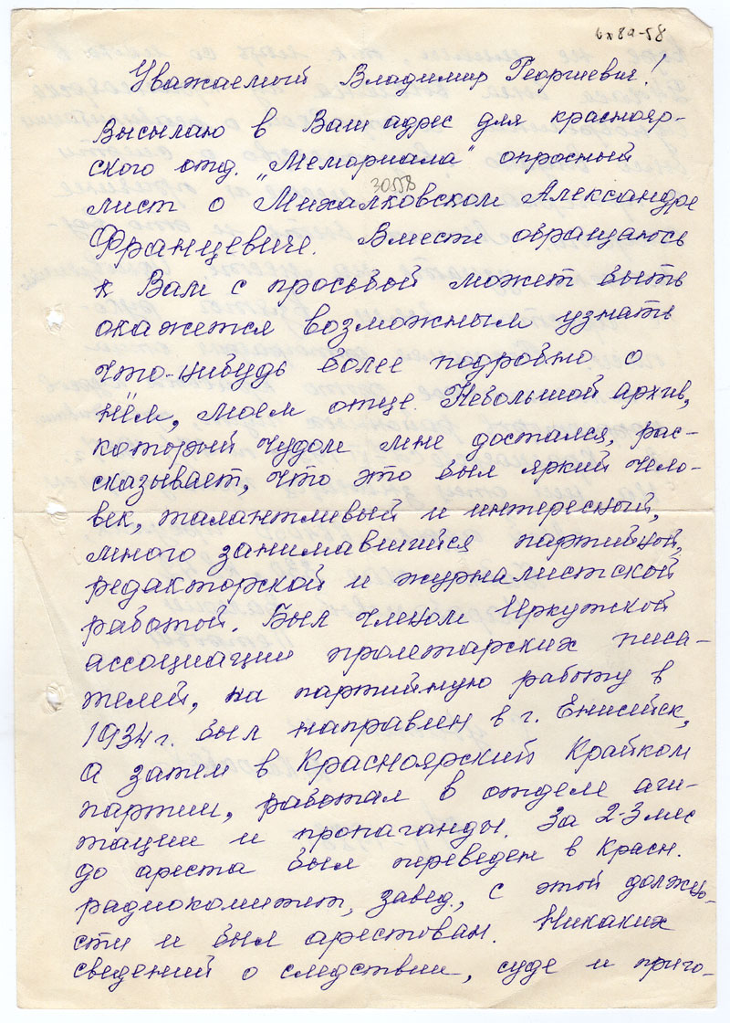 Михалковском Александре Францевиче. Вместе обращаюсь к Вам с просьбой может быть