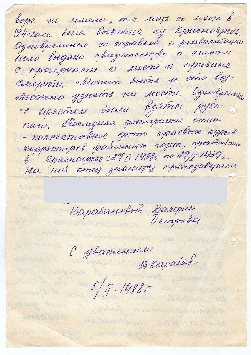 арестован. Никаких сведений о следствии, суде и приговоре не имели, т.к. мать со