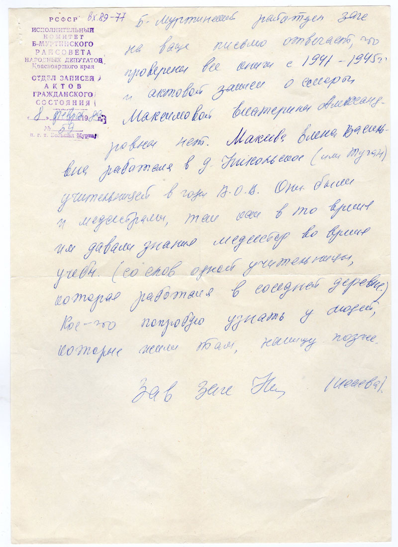 Б-Муртинский райотдел загс на ваше письмо отвечает, что проверены все книги с