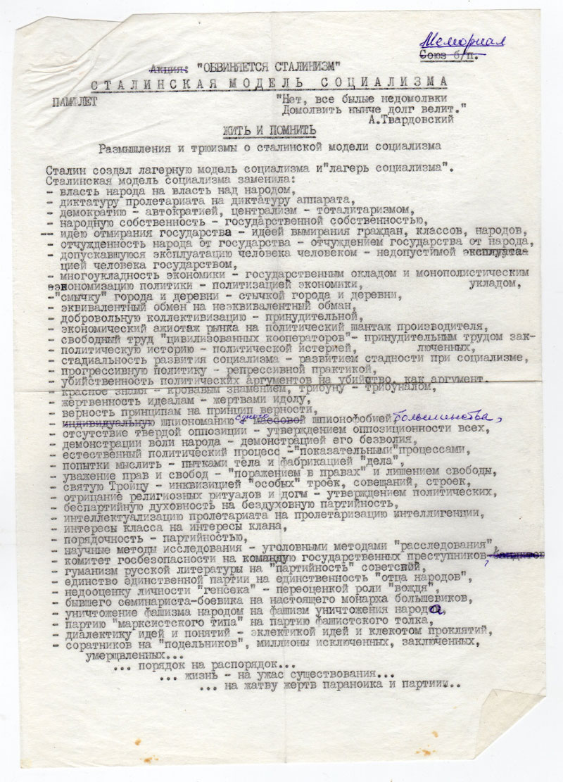 Акция: «ОБВИНЯЕТСЯ СТАЛИНИЗМ»