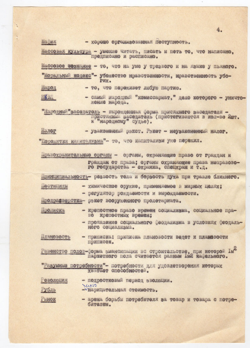 - попытки мыслить – пытками тела и фабрикацией ''дела'', шпионофобию одного –