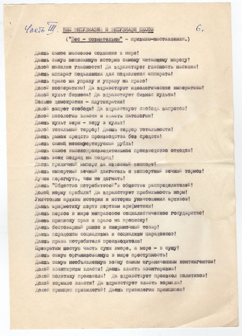 - жертвенность идеалам жертвами идолу, ''святую'' троицу – ''особой'' тройкой',