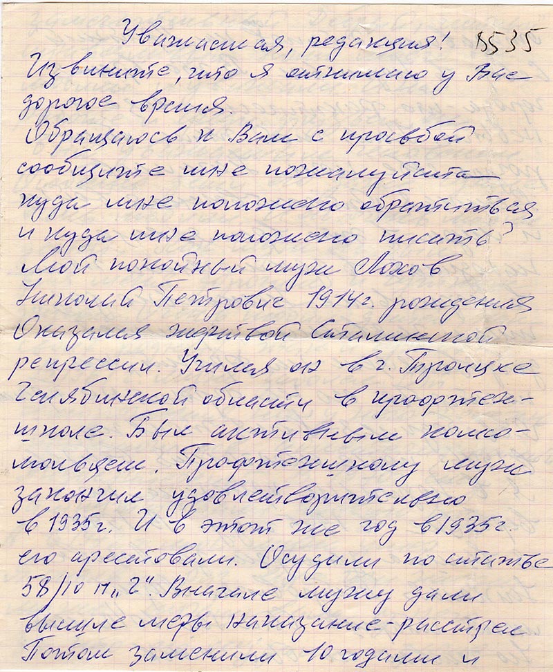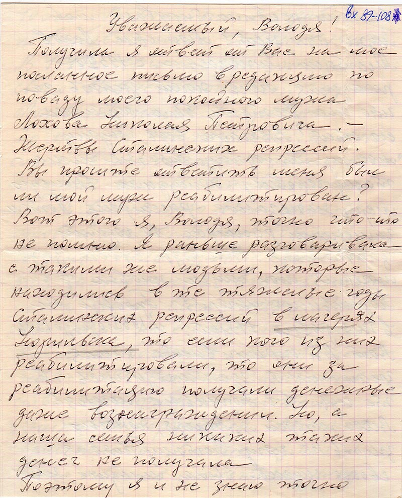 покойного мужа Лохова Николая Петровича. - Жертвы Сталинских репрессий. Вы