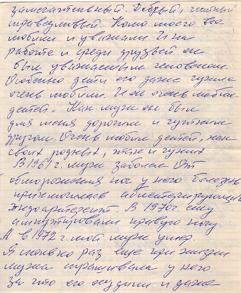 В 1961 г. муж заболел. От обморожения ног у него болезнь приключилась