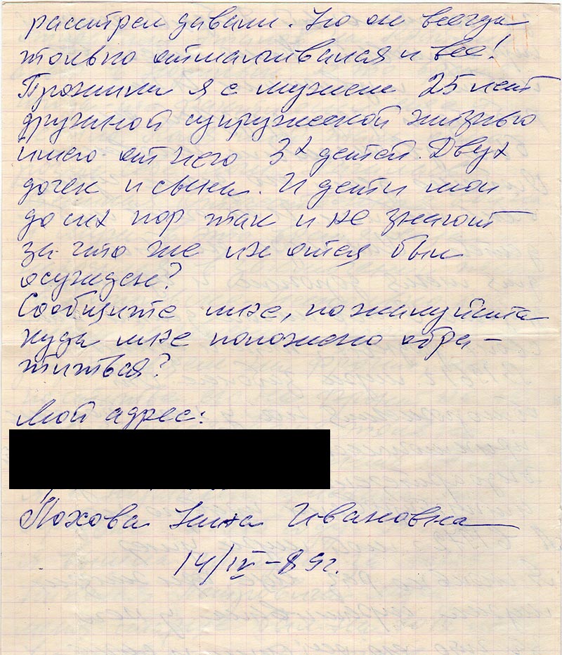 Получила я ответ от Вас на мое посланное письмо в редакцию по поваду моего
