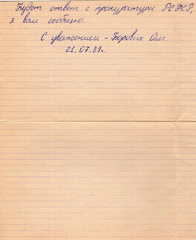 Будет ответ с прокуратуры РСФСР, я вам сообщю.