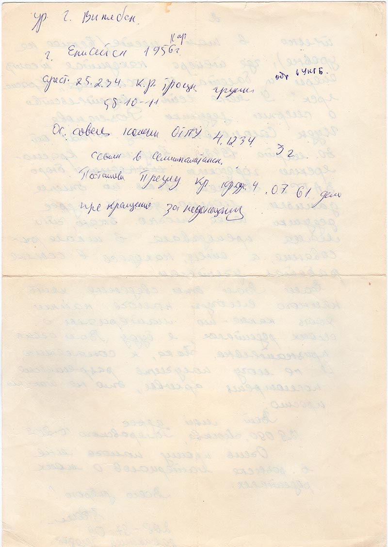 Постановл.Презид. Кр Кр суде 4.07.61 дело прекращено за недоказан