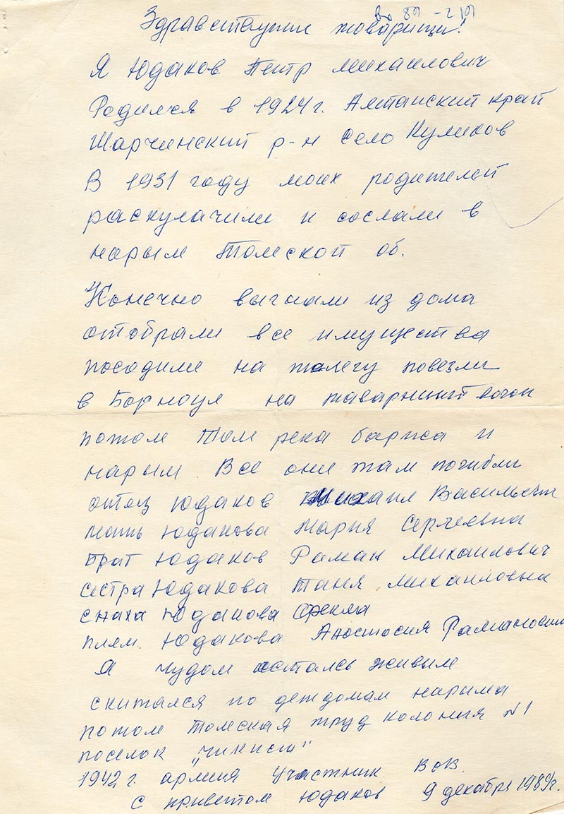 Куликов В 1931 году моих родителей раскулачили и сослали в Нарым Томской обл.