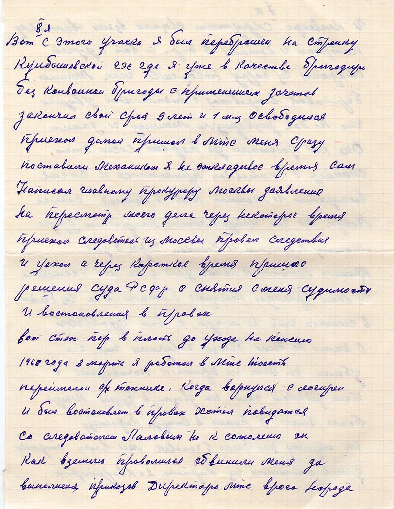 После поступления на работу в МТС написал заявление в прокуратуру СССР. Было проведено следствие и я после следствия был реабилитированным.