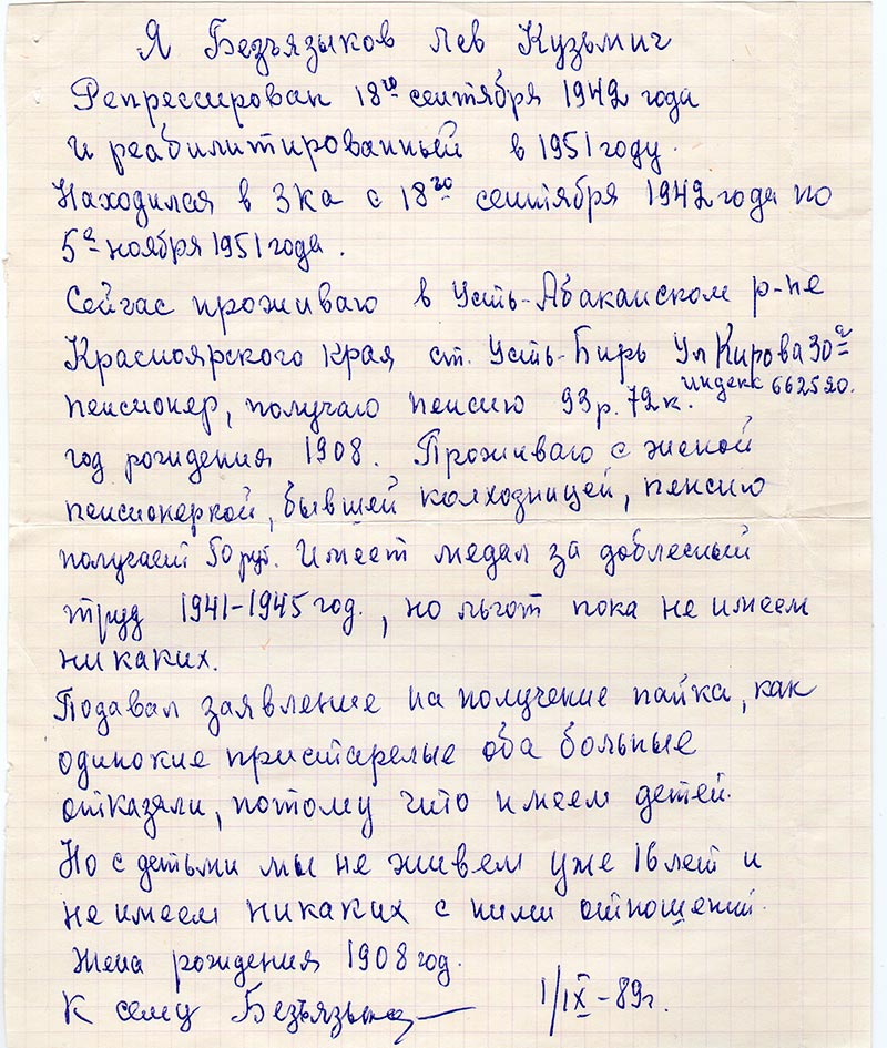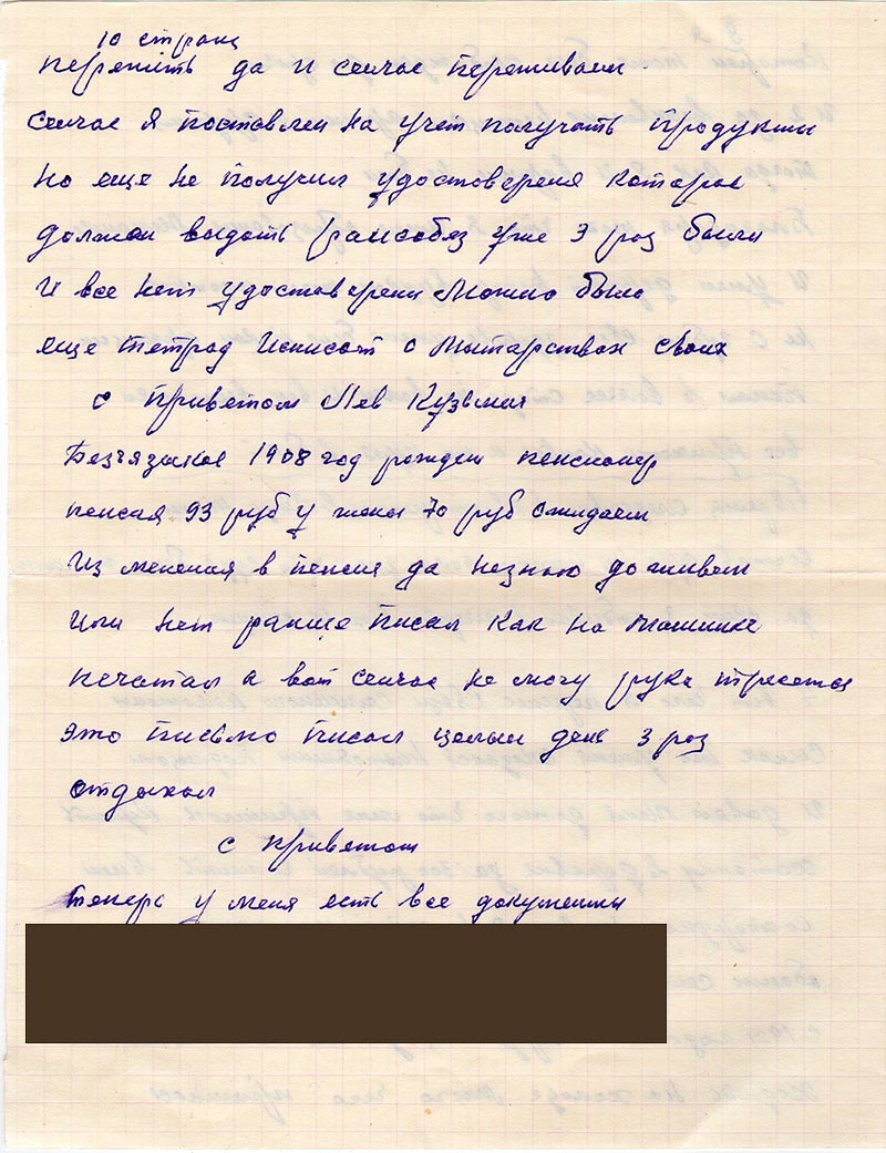Безъязыков 1908 год рожден пенсионер пенсия 93 руб у жены 70 руб ожидаем