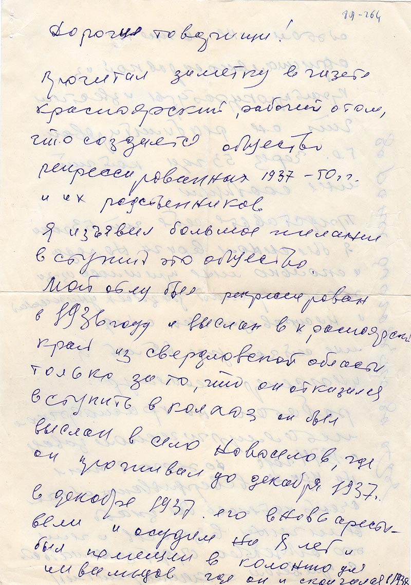 Прочитал заметку в газете Красноярский рабочий о том, что создается общество репрессированных 1937-50 гг. и их родственников