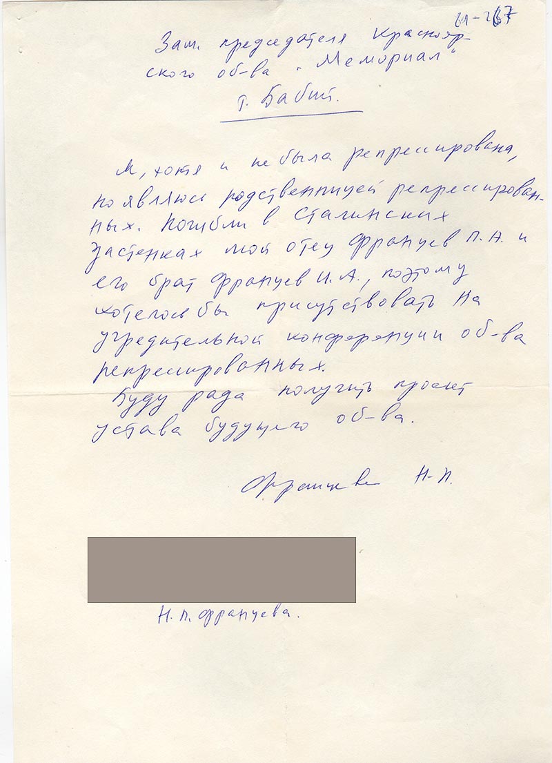 Погибли в Сталинских застенках мой отец Францев П. А. и его брат Францев И. А.,