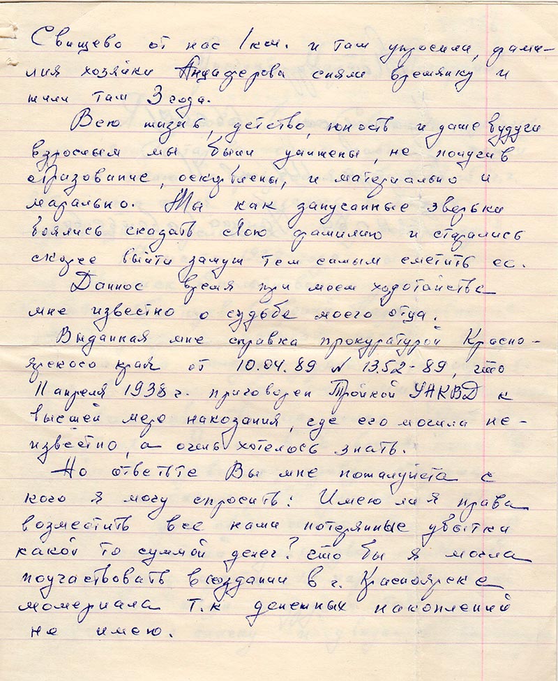 Данное время при моем ходотайстве мне известно о судьбе моего отца.