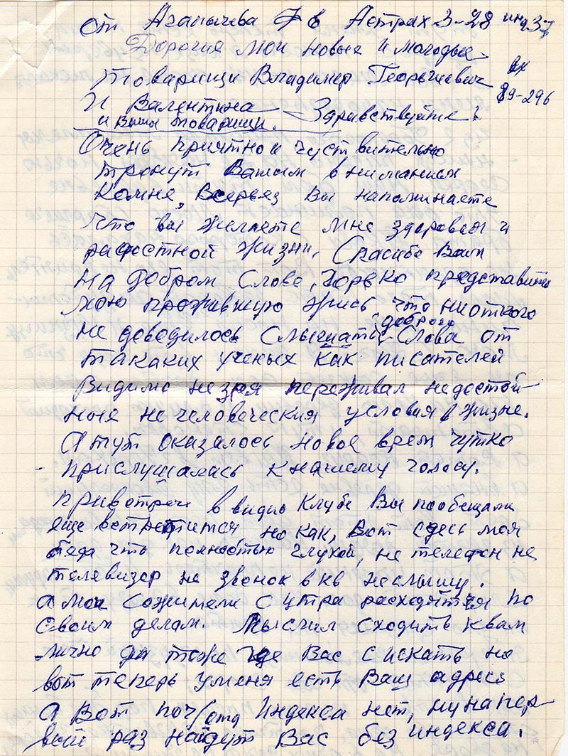 Дорогие Мои Новые и Молодые товарищи Владимир Георгиевич и Валентина и Ваши товарищи. Здравствуйте:
