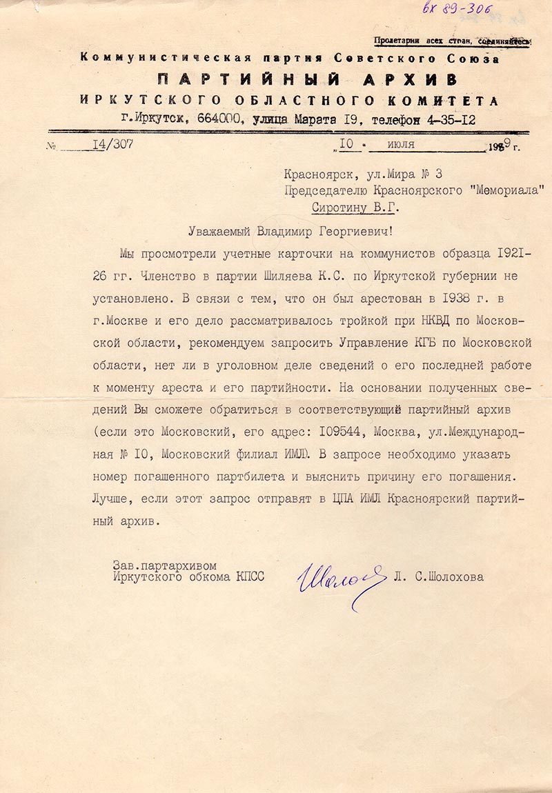 Письма в Красноярское общество "Мемориал"