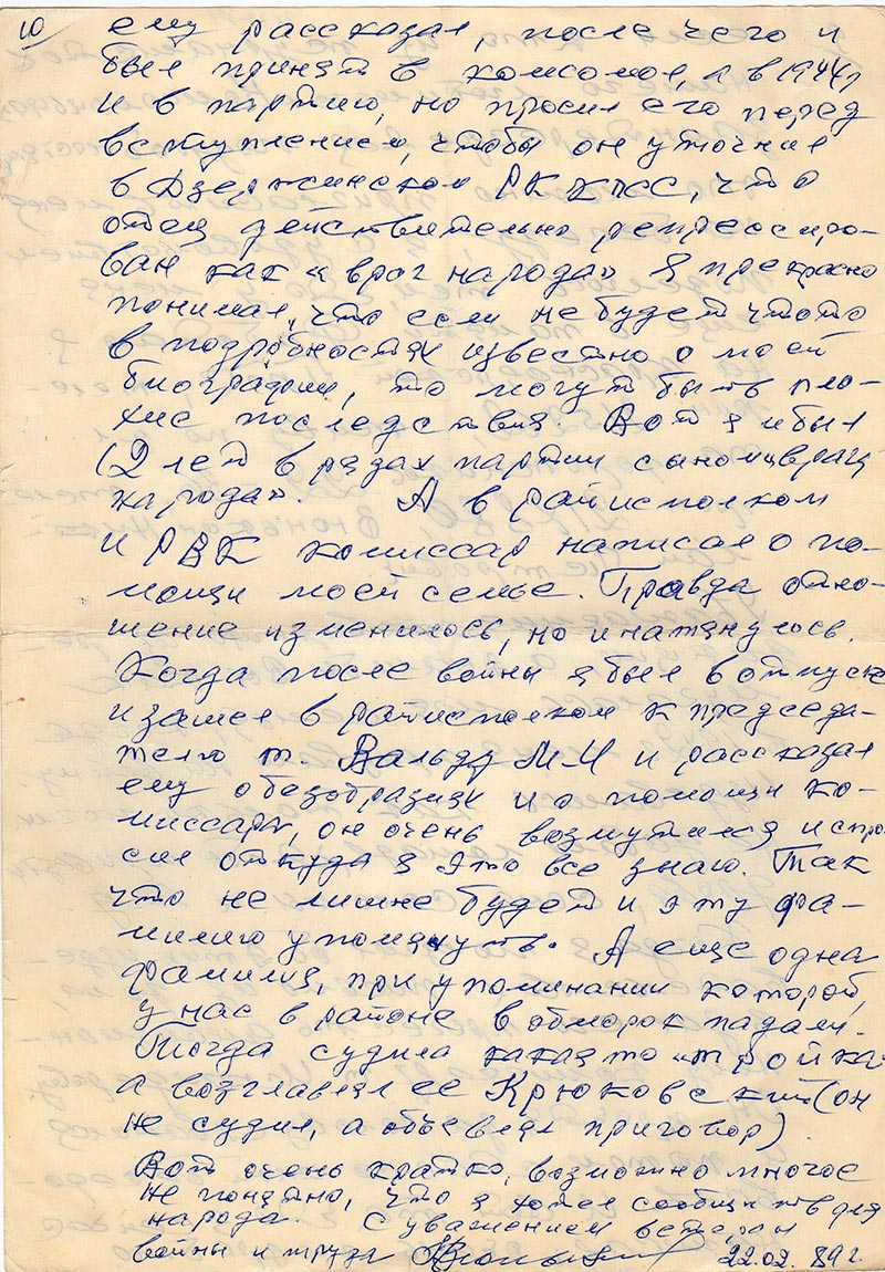 С уважением ветеран войны и труда – подпись 22.02.89 г.
