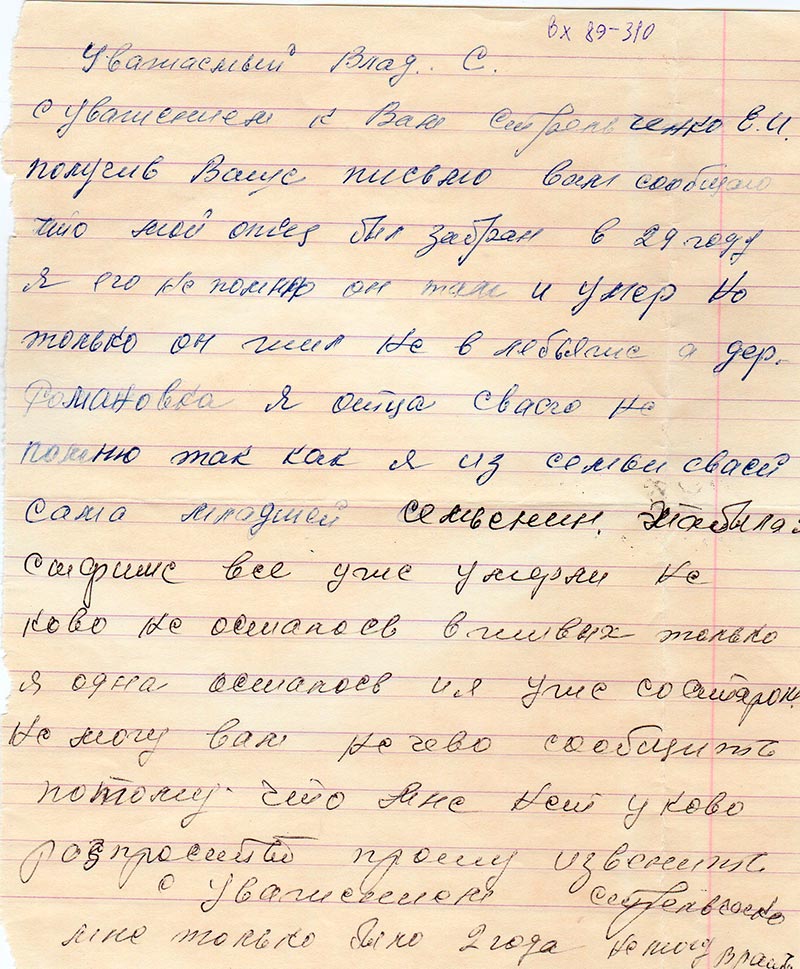 С уважением к вам Стрельченко Е.И. получив Ваше письмо вам сообщаю что мой отец