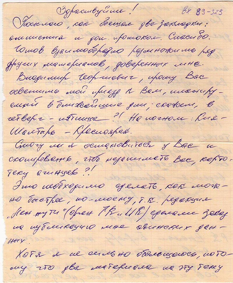 Копия первого находится у В. Биргер, для посылки в «Енисей».