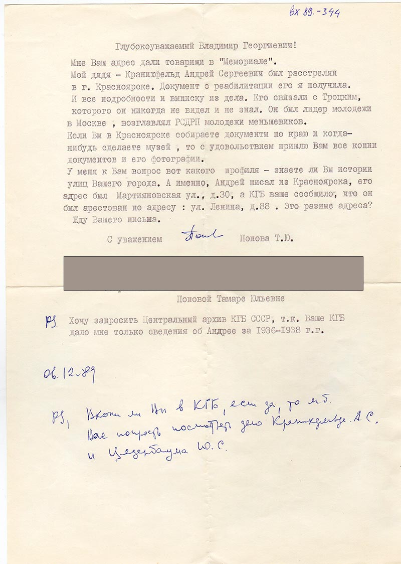 Письма в Красноярское общество "Мемориал"