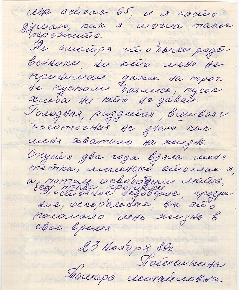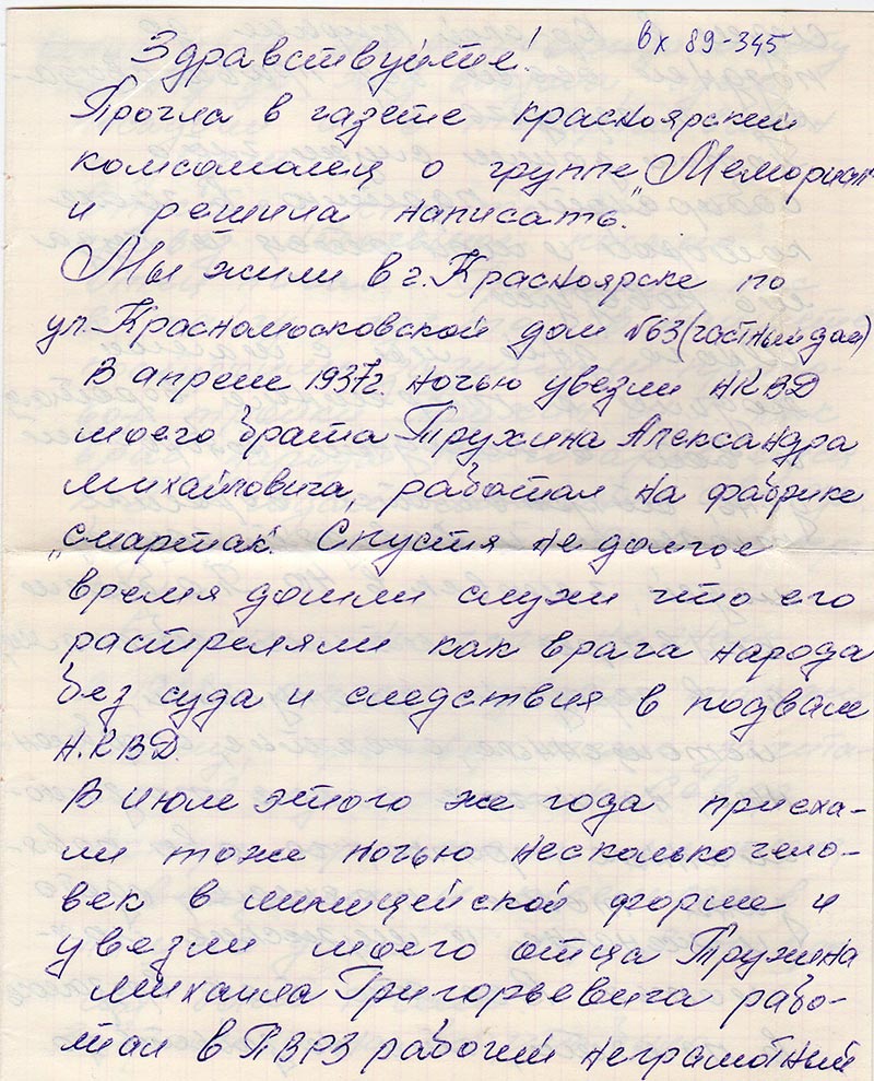 Письма в Красноярское общество "Мемориал"
