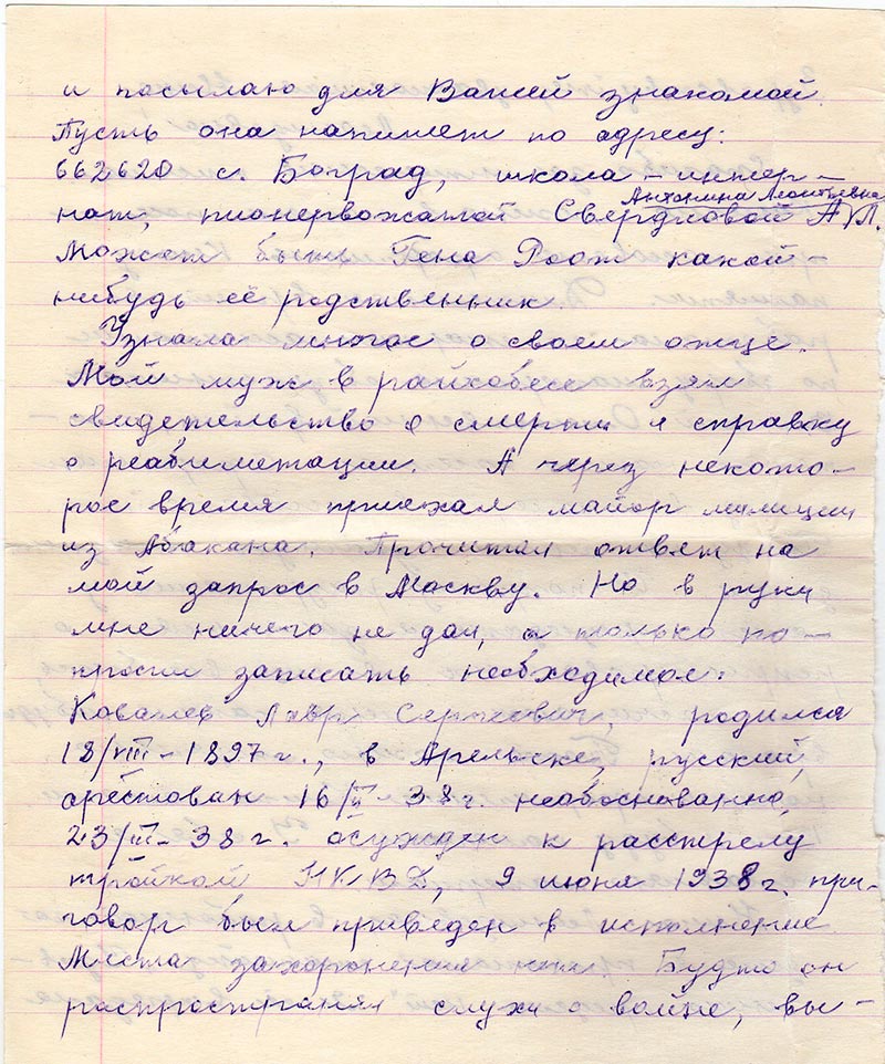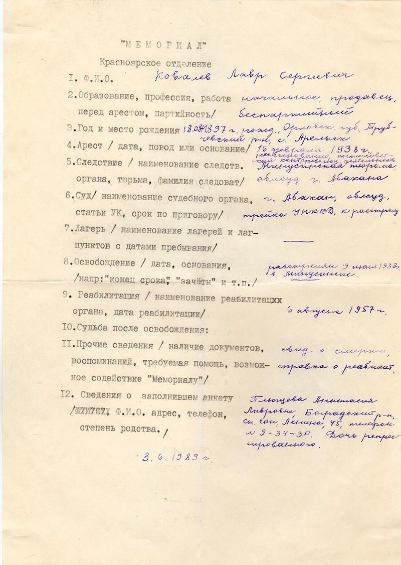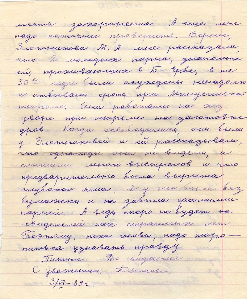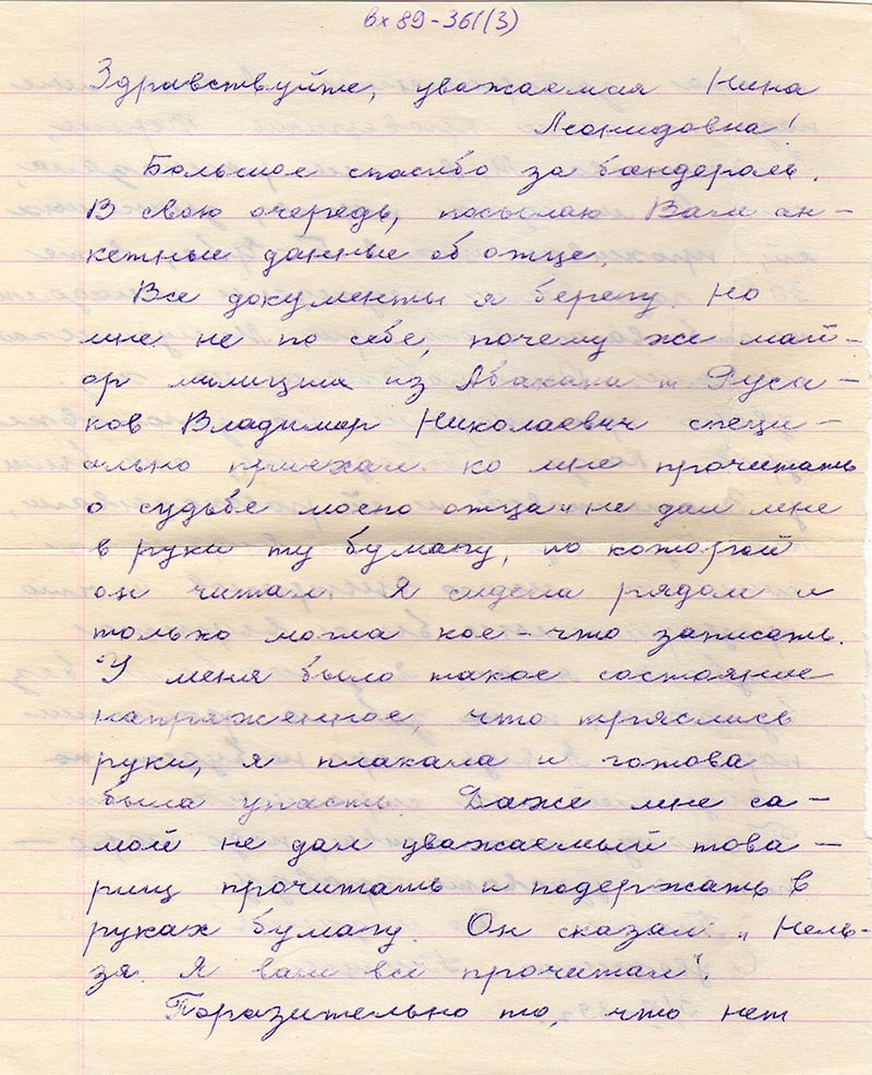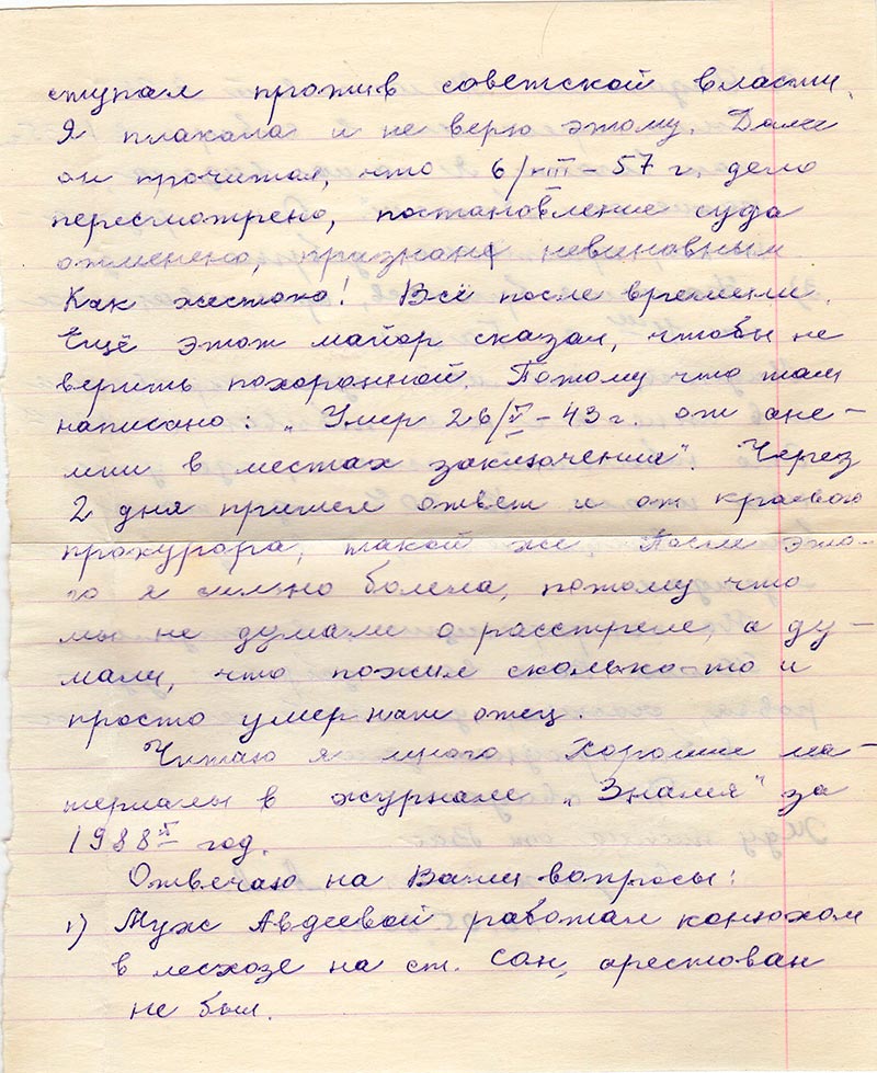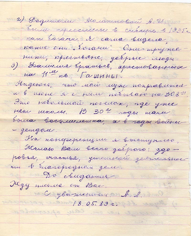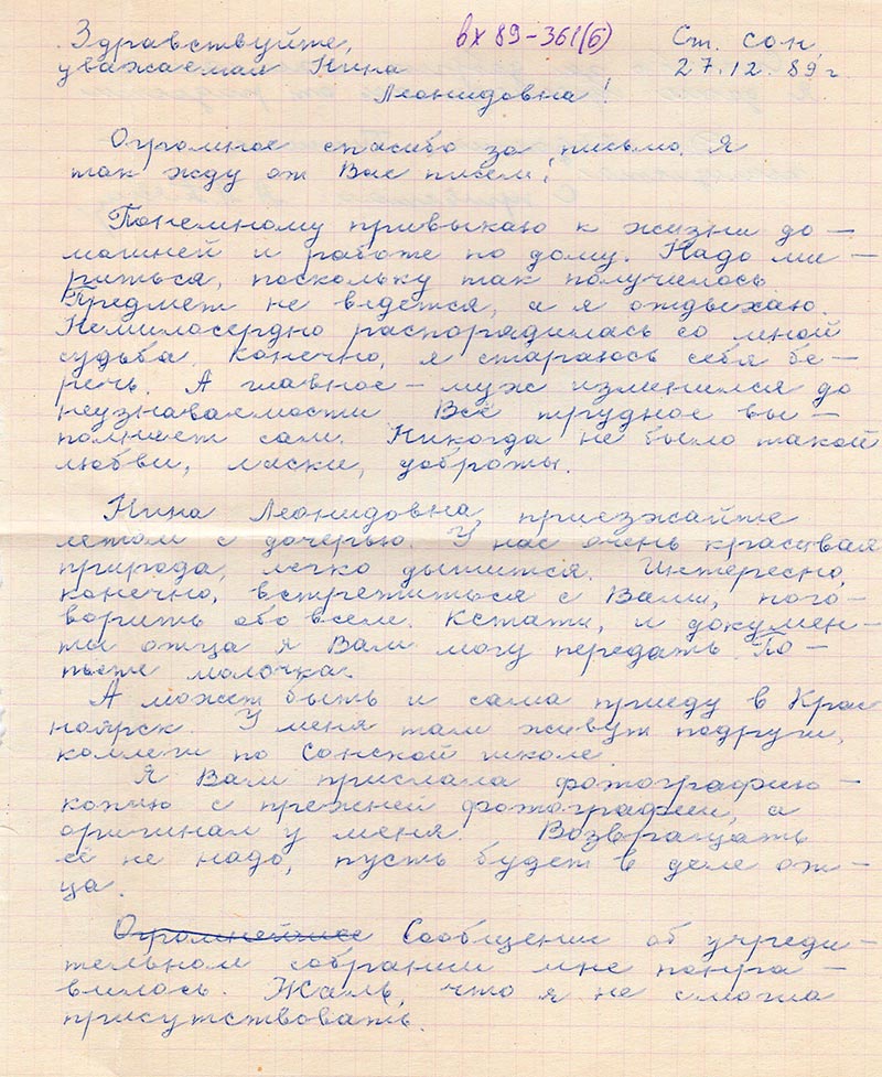Письма в Красноярское общество "Мемориал"