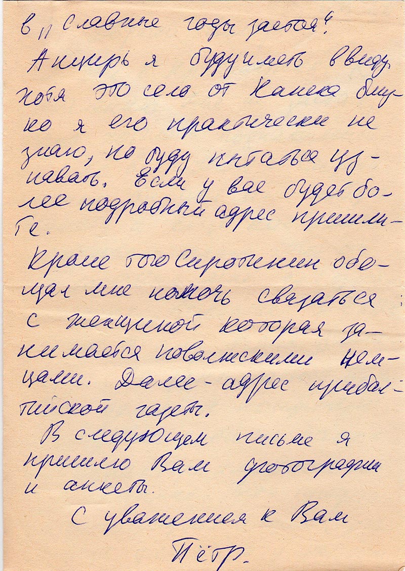 Кроме того Сиротинин обещал мне помочь связаться с женщиной которая занимается поволжскими немцами. Далее – адрес прибалтийской газеты.