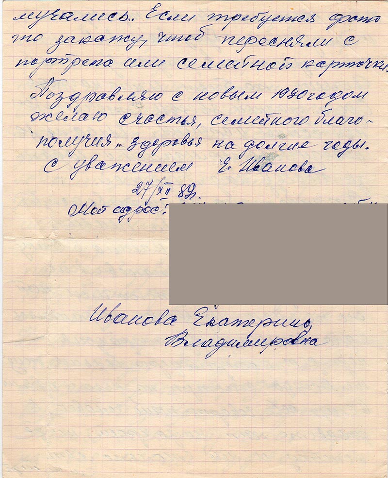 С уважением Е. Иванова 27/XII 89 г.