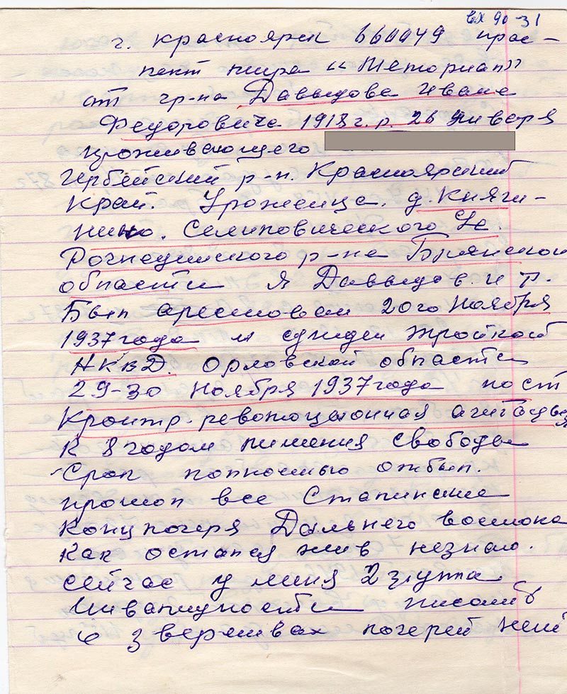 Красноярский Край. Уроженца д. Княгинино. Селиловического с/с Рогнединского р-на