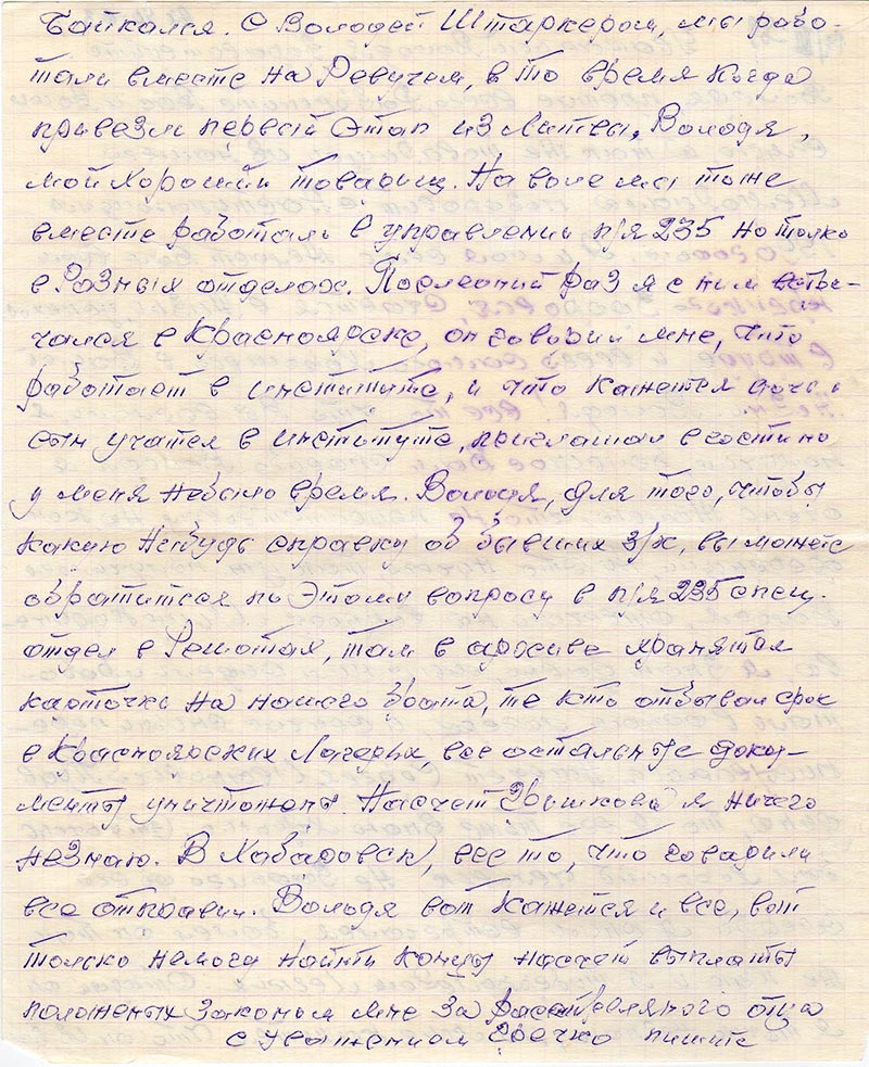 Письма в Красноярское общество "Мемориал"