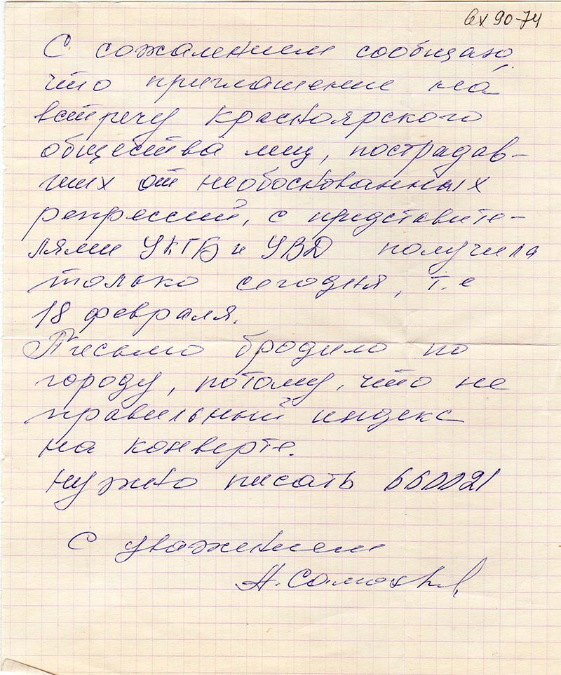С сожалением сообщаю, что приглашение на встречу Красноярского общества лиц,