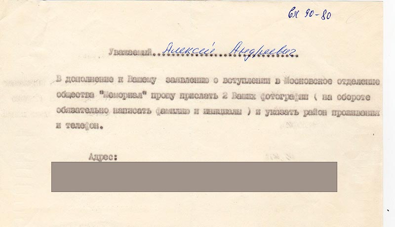 «Мемориал» прошу прислать 2 Ваших фотографии (на обороте обязательно написать