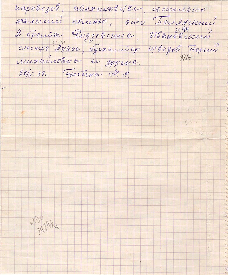 Красноярский край … В Иланске 1937 году было много арестованных в основном работники депо, машинисты паравозов, стахановцы, несколько фамилий помню, это Полянский 2 брата, Рудзевские, Ивановский слесарь Лукке, бухгалтер Шведов Георгий Михайлович и другие.