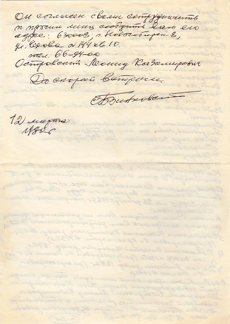Он согласен с вами сотрудничить и просил меня сообщить вам его адрес: г. Новосибирск.