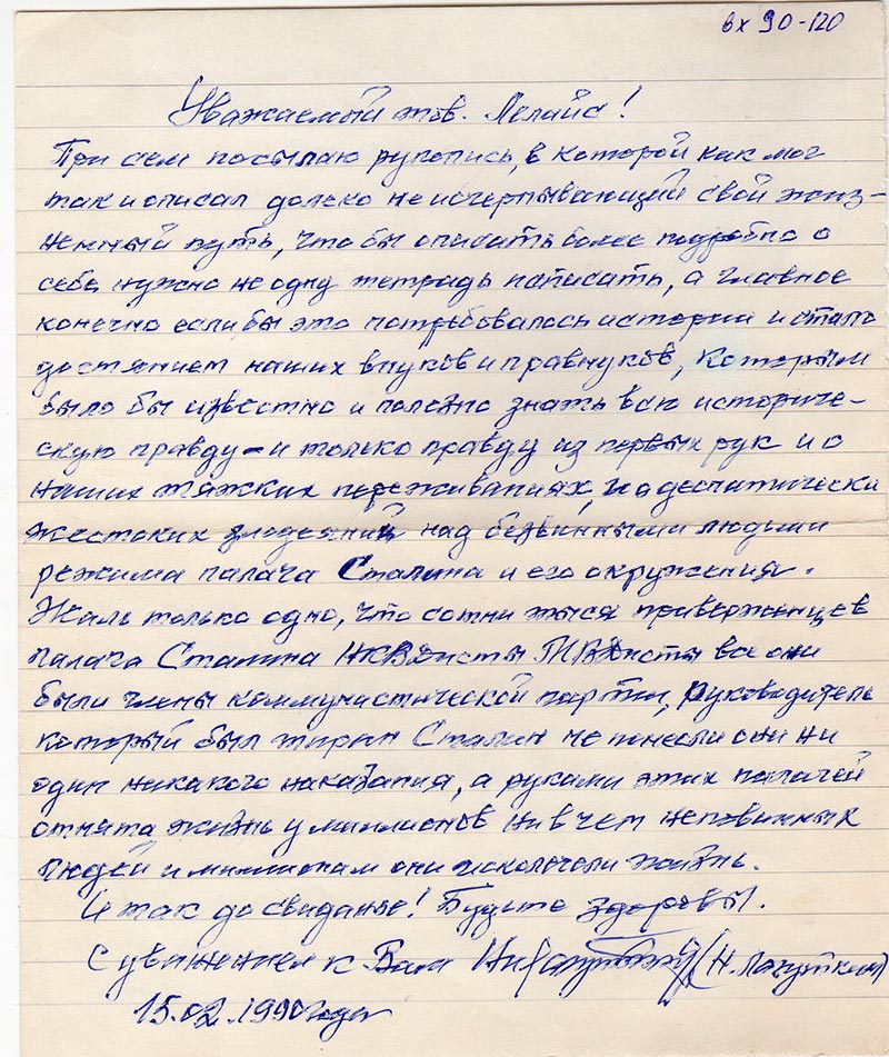С уважением к Вам (подпись) Н. Лагуткин