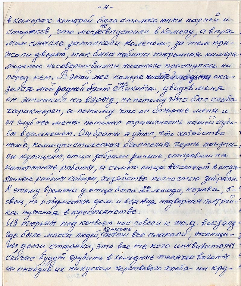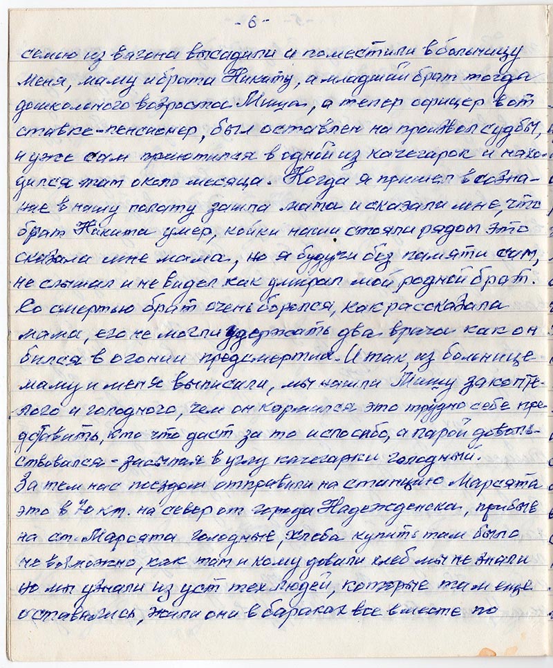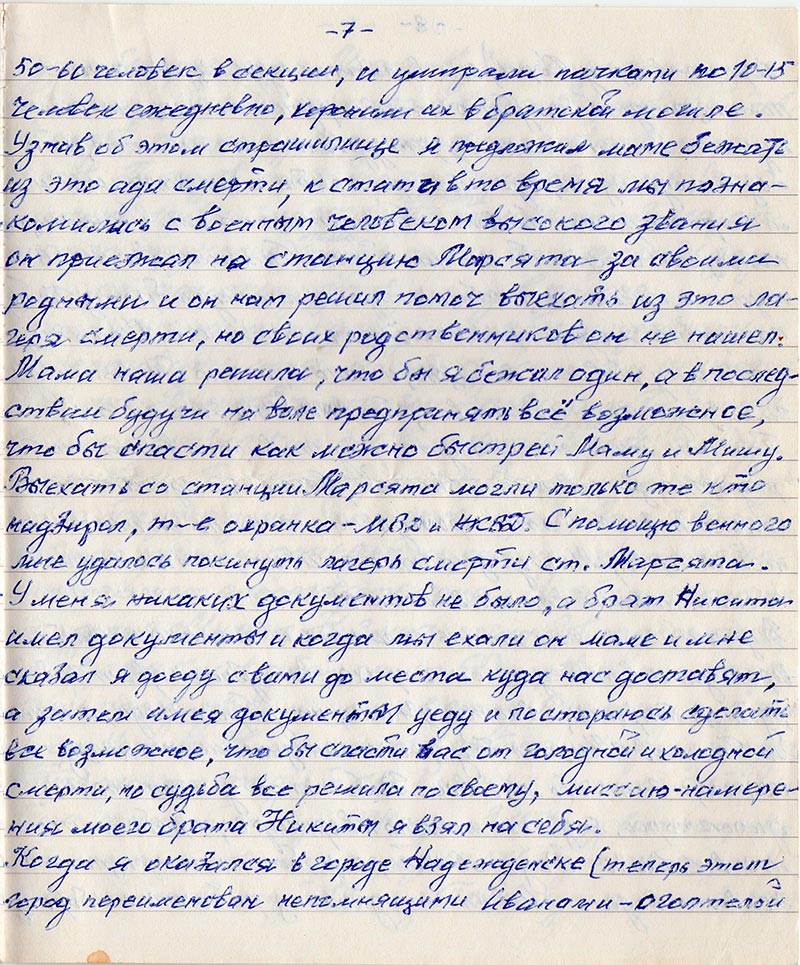 лагерь смерти ст. Марсяты. У меня никаких документов не было, а брат Никита имел
