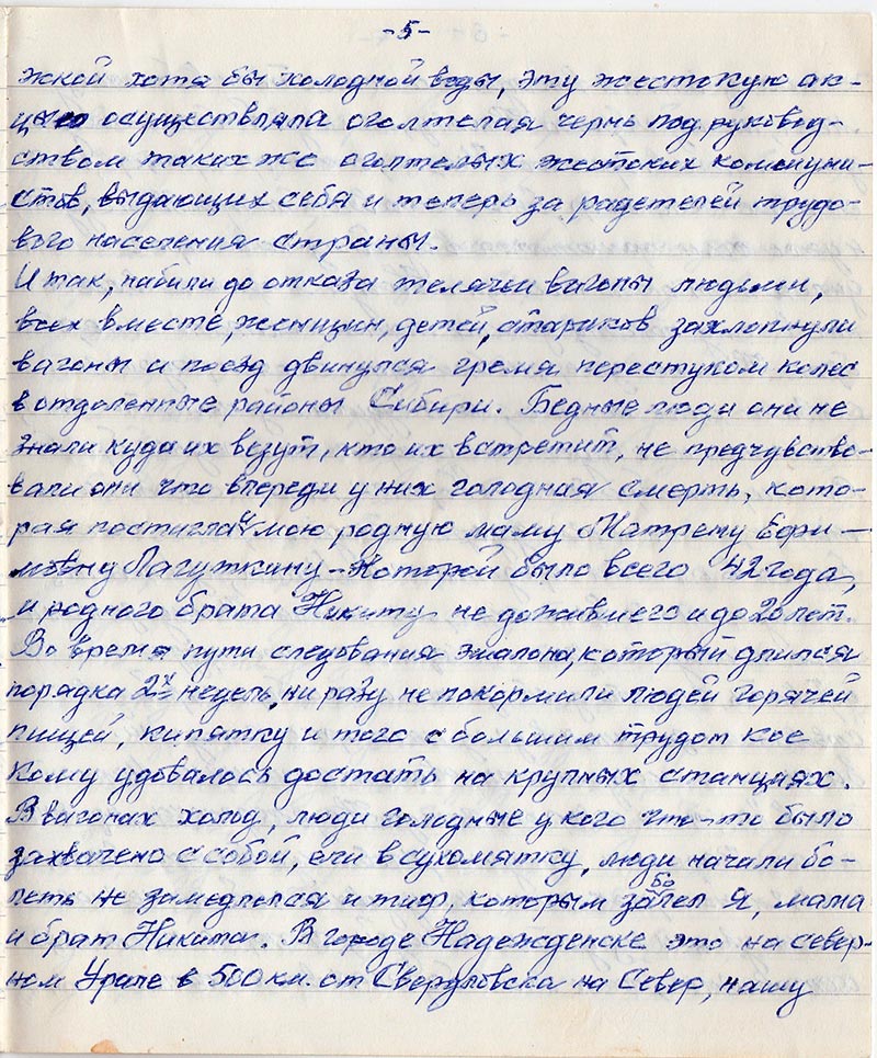 брата Никиту не дожившего и до 20 лет. Во время пути следования эшалона, который