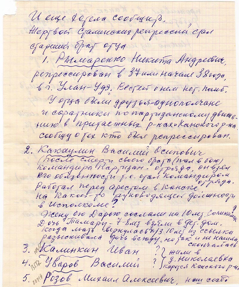 У отца были друзья-однополчане и соратники по партизанскому движению в притаежных районах и Канского р-на. Сообщу о тех кто был репрессирован.