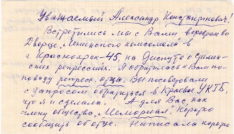 Красноярск-45 на Диспуте о сталинских репрессиях. Я обратилась к Вам по поводу