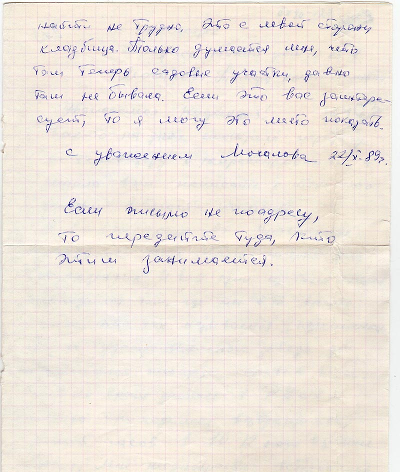 с уважением Мочалова 22/X- 89 г.