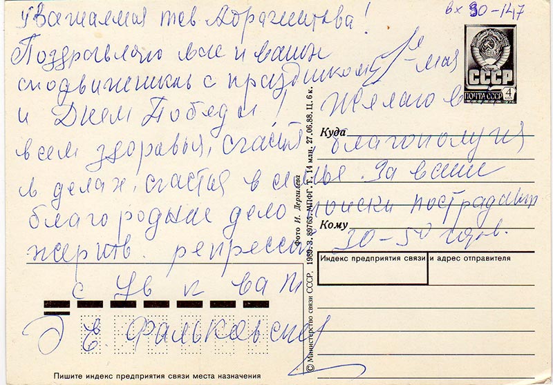 Письма в Красноярское общество "Мемориал"