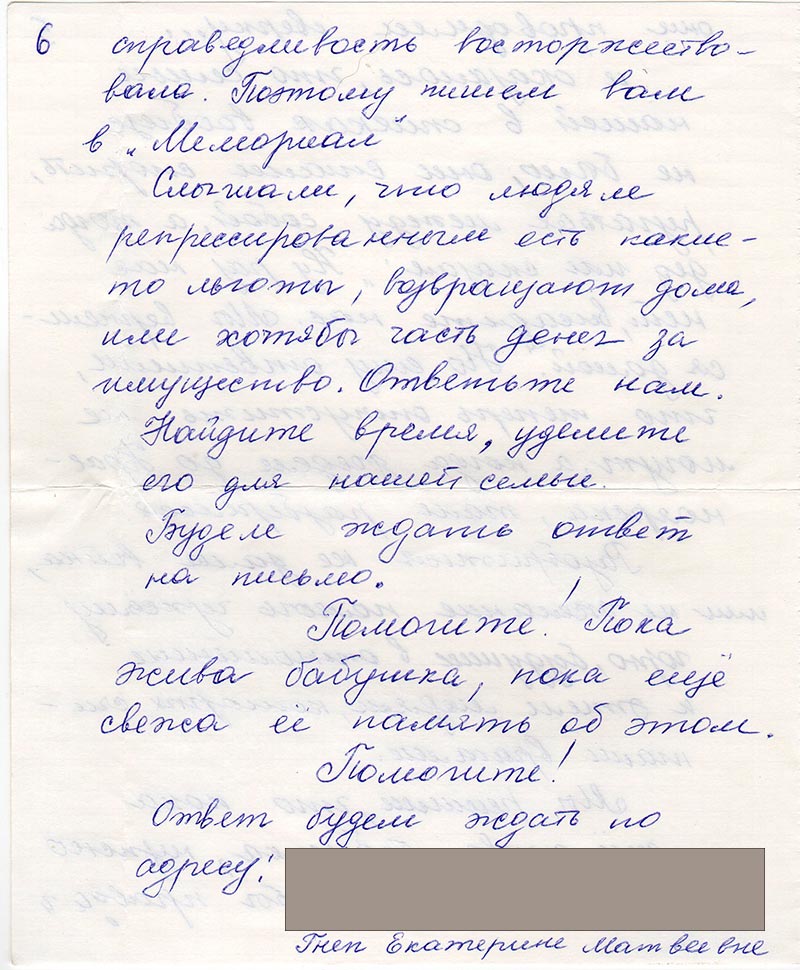Мы решили, что пока ещё жива бабушка, нужно сделать так, чтобы правда и справедливость восторжествовала. Поэтому пишем вам в «Мемориал»