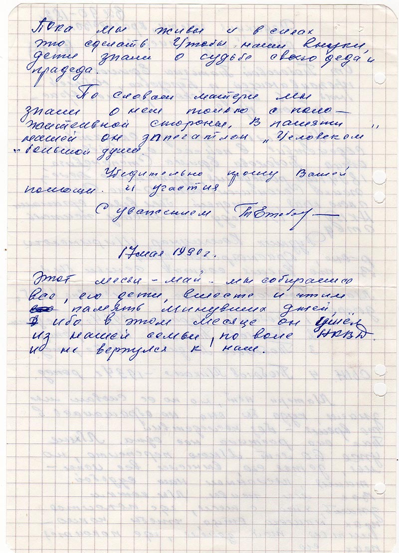 Пока мы живы и в силах это сделать. Чтобы наши внуки, дети знали о судьбе своего деда и прадеда.
