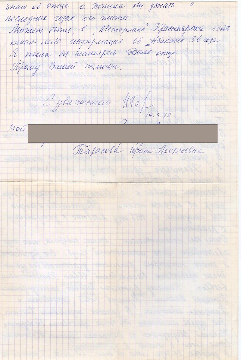 Письма в Красноярское общество "Мемориал"