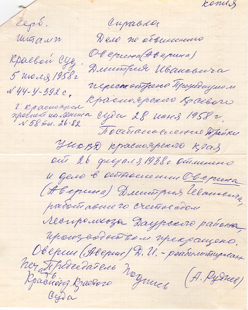 Письма в Красноярское общество "Мемориал"