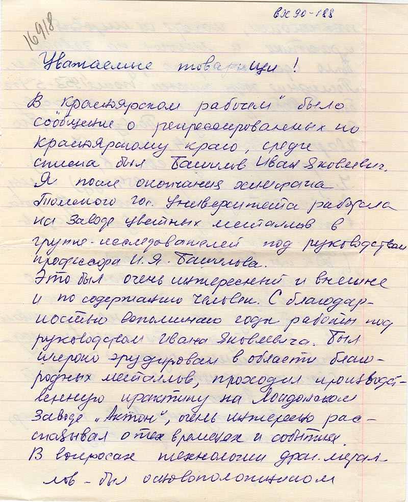 Письма в Красноярское общество "Мемориал"