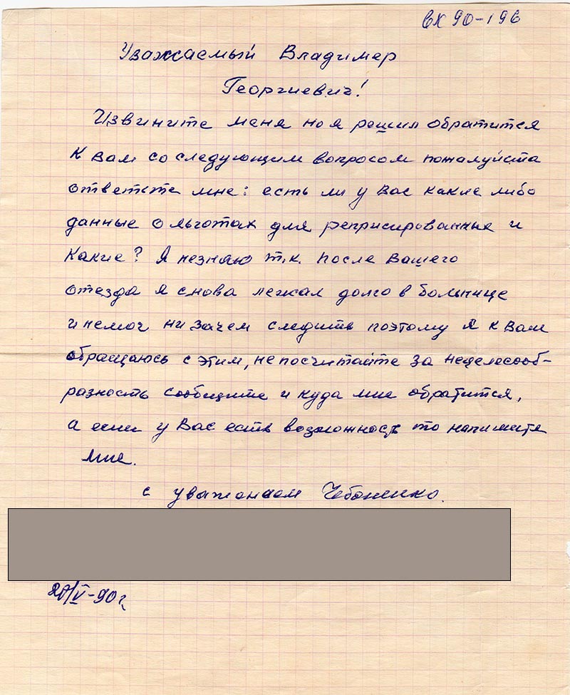 ответьте мне: есть ли у Вас какие либо данные о льготах для реприсированных и